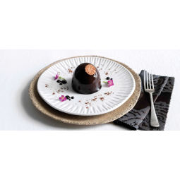 Un gioiello alla nocciola e crema al cioccolato fondente, adagiato su un morbido pan di Spagna al cacao con una golosa granella croccante di cioccolato al latte. Il tutto racchiuso in una brillante glassa al cacao con un prezioso decoro al cioccolato bianco.
